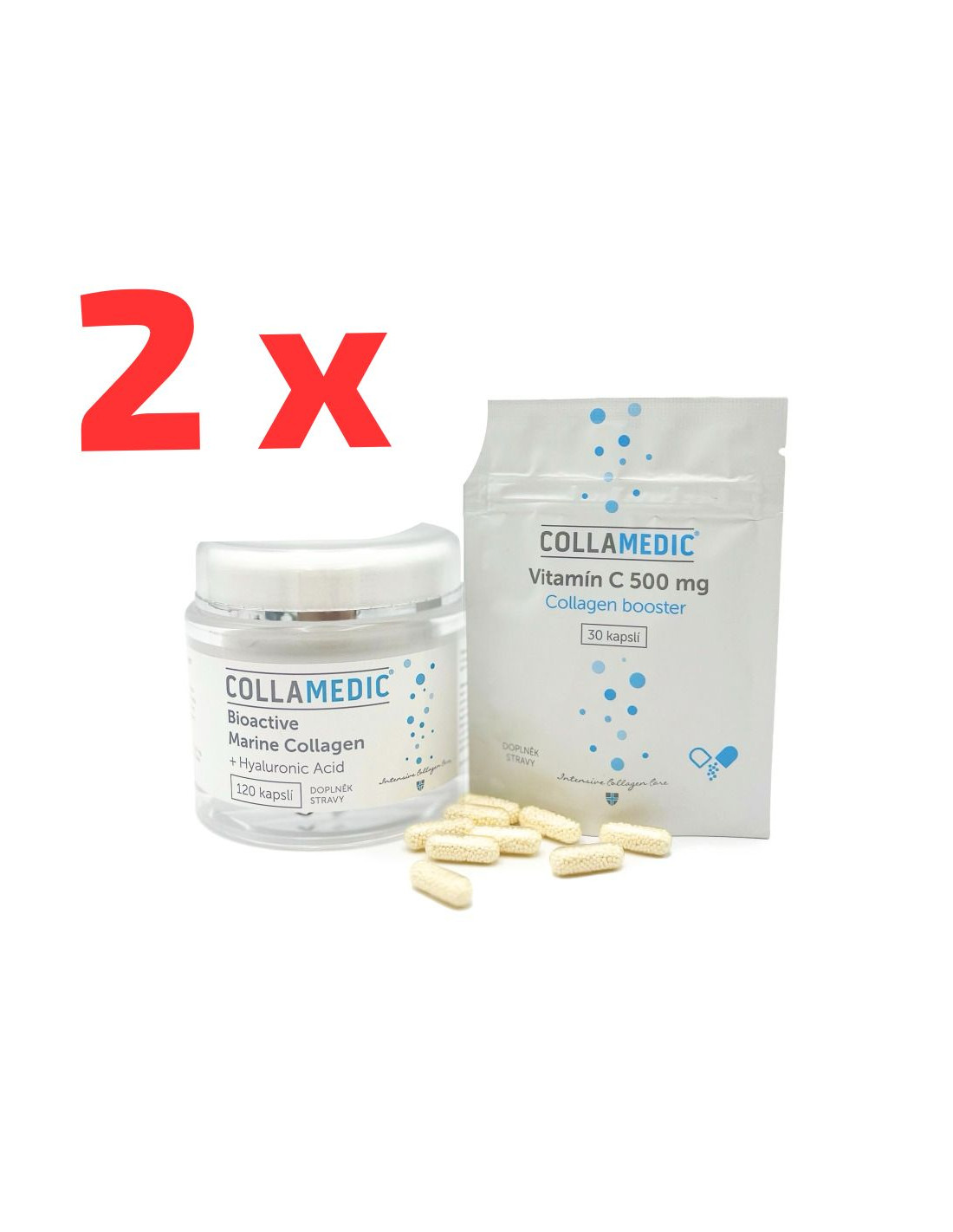 Ke každému balení COLLAMEDIC® získáváte jako dárek měsíční kúru Vitamínu C 500 mg s postupným uvolňováním v hodnotě 119 Kč ZDARMA. Vitamín C hraje důležitou roli při tvorbě vlastního kolagenu v organismu. Díky užívání kapslí z COLLAMEDIC® Boosteru vyrobených speciální technologií mikropelet je tělo zásobeno vitamínem C průběžně a využívá jej efektivněji.Kolagen je nejvíce zastoupenou bílkovinou v našem těle. Od 25. roku života však jeho vlastní produkce v těle klesá a jeho pokles se pak odráží především v kvalitě pleti, vlasů a nehtů. Od 40 let věku je produkce kolagenu zastavena úplně. Ideálním řešením je pokles vlastního kolagenu v těle nahradit potravinovými doplňky obsahujícími mořské kolagenní peptidy.
