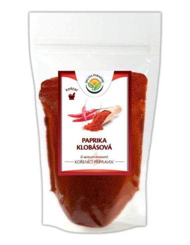 Paprika klobásová patří k oblíbenému koření u nás i ve světové kuchyni. Její vůně je výrazná, intenzivní a dlouhotrvající. Převládá silně kořeněná chuť, kterou doprovází jemná štiplavost. Má vynikající barvivost a velmi příjemně dochutí omáčky či zeleninové pokrmy.