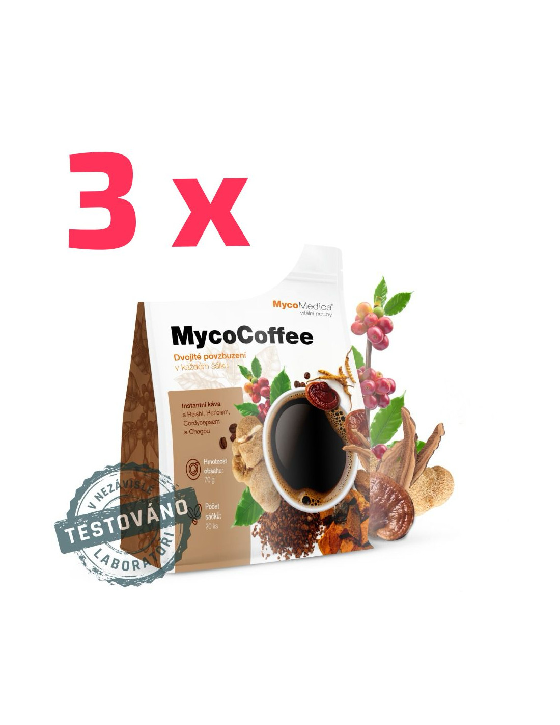 MycoMedica MycoCoffee 3 x instantní káva 20 x 3.5 g